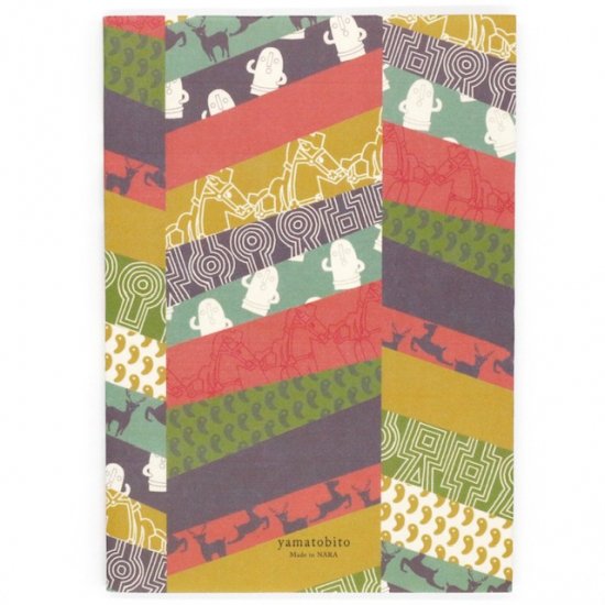 埴輪と古墳をアレンジしたデザインの御朱印帳です。古墳からの出土品などをイメージし、可愛くポップに仕上げました。